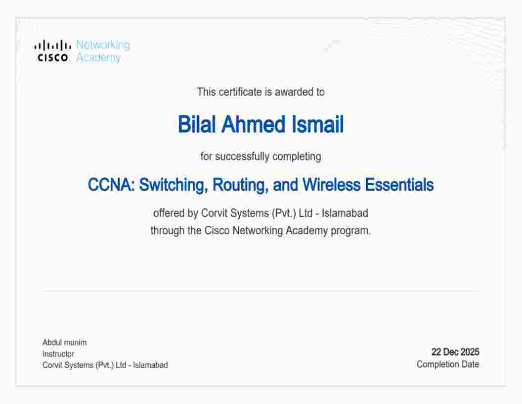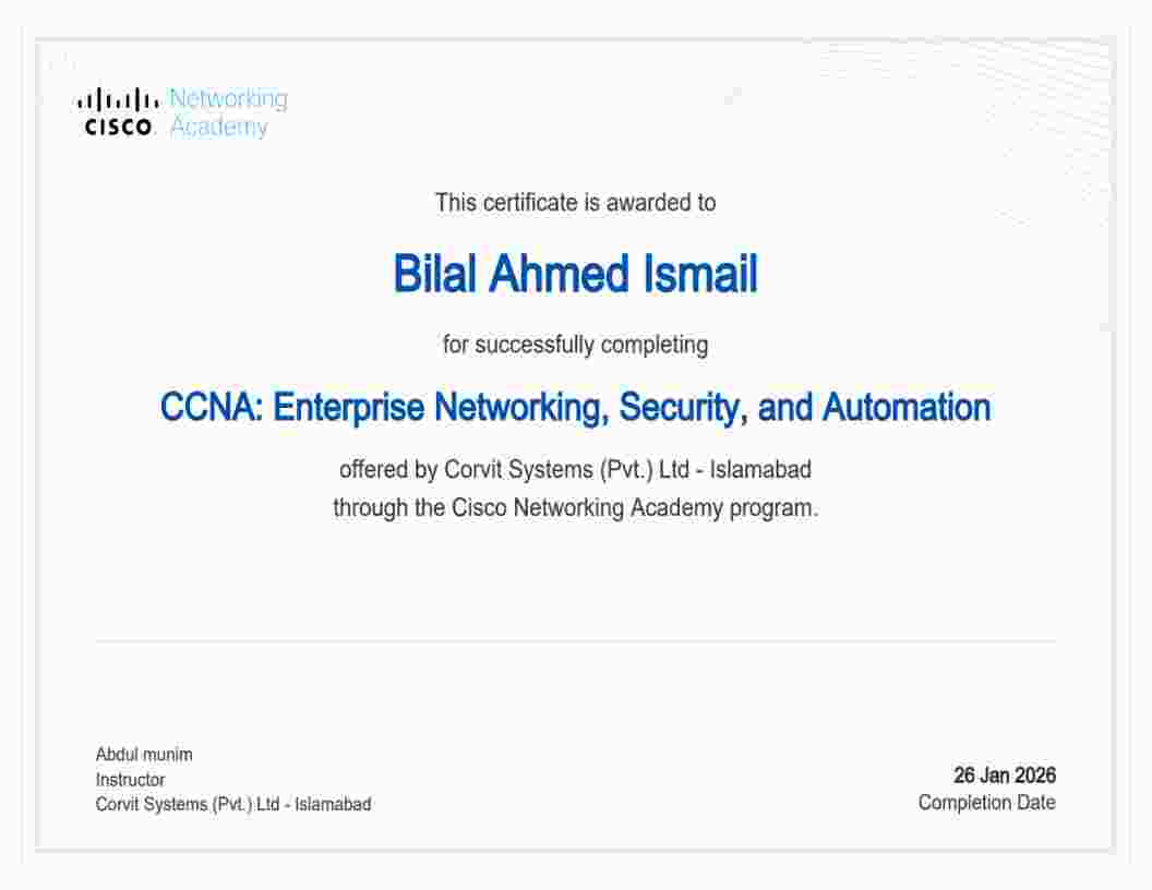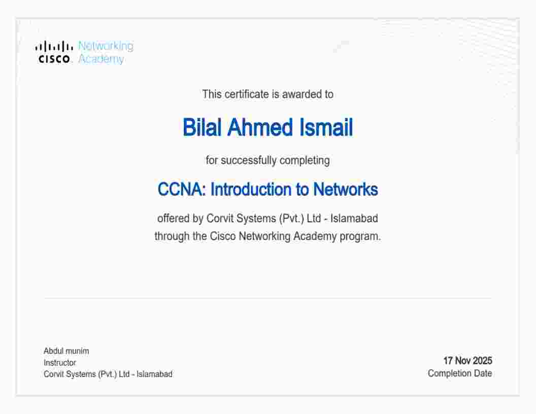 Professional credentials and specialized training across cybersecurity, networking, and intelligent systems.